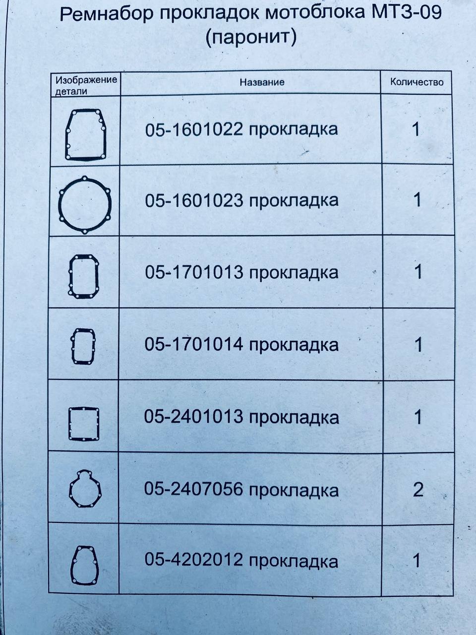 / Комплект прокладок